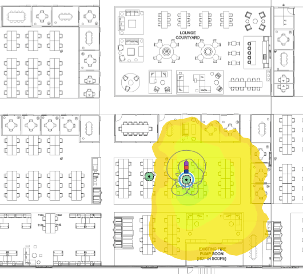 Most modern enterprises have an open office design which is bad for WiFi in terms of Co-Channel interference. Without walls, it is not possible to contain signal from omnidirectional antennae and the client device tends to stick to the associated AP longer than ideal. Following is the coverage from a Mist AP41 with integrated omni directional antennae with EIRP at 14 dBm.