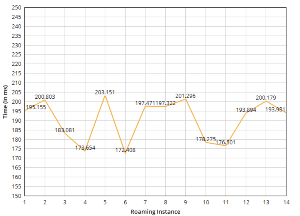 A lot of factors including the delay between access point and authentication server, number of clients connected to access points, retransmissions, coverage overlap etc will impact these numbers. Every application is designed differently to handle traffic. Some of them might have higher timeout values while others could be very time sensitive. The goal of this study was to have an idea of time for initial connection and roaming handoffs and to be able to use this data to help determine application resiliency to these events. I hope this helps for other engineers in the community as well!