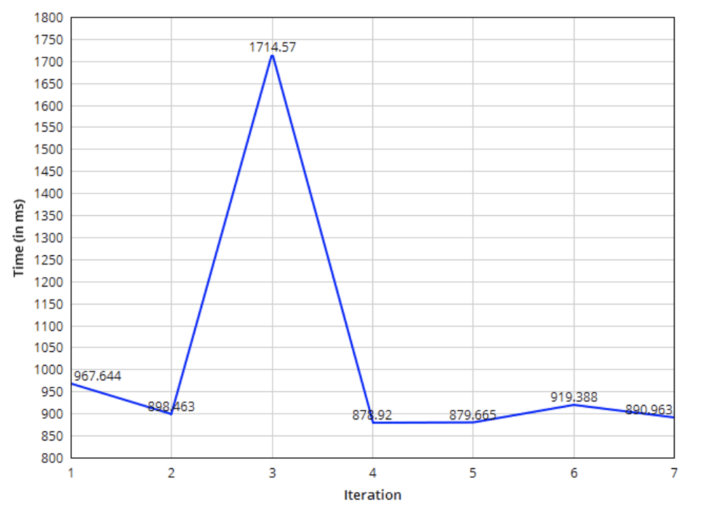 For this study, I chose an android mobile device that authenticates and authorizes using the EAP-TLS framework. The authentication server is an ISE instance with an average of 25 milli seconds latency to the AP. To collect data for analysis, I performed seven iterations of roaming tests. Each iteration had one initial connection instance when the device goes through Authentication, Association, 802.1X EAP and 4-way handshake and at least one roaming instance when the device goes through authentication and re-association. The graph presented below shows the overall time from beginning of authentication to the end of 4-way handshake. Most iterations took less than one second to complete the connection process. However, there is an outlier which took 1.714 seconds for the process to complete. Accounting the outlier to WAN fluctuations and excluding it from calculations gives the average time to complete the initial connection process as 905.8405 milli seconds.